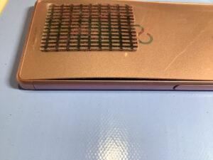お持ち込みいただいた端末は、バッテリーが膨張してしまい、パネルを押し上げています(T_T)