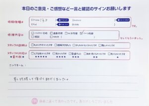 【iPhone13Pのパーツ修理でご来店のお客様から頂いたコメント】